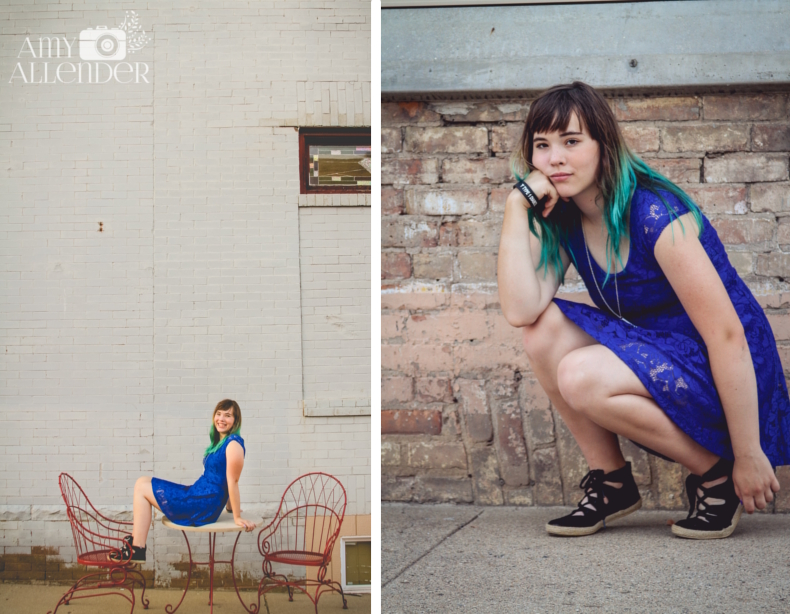 This is Allene. In case you haven’t noticed…she has aqua hair. Which, automatically makes her about 30x cooler than I’ll ever be. Sure, she may hail from small-town, Practically Canada, but she’s edgy, urban and has a do-what-I-please attitude that makes me smile. Oh, yeah…and she loves her mom–who joined us on the session. It was her mad texting skills and random comments that caused a lot of these adorable caught-me-off-gaurd smiles.