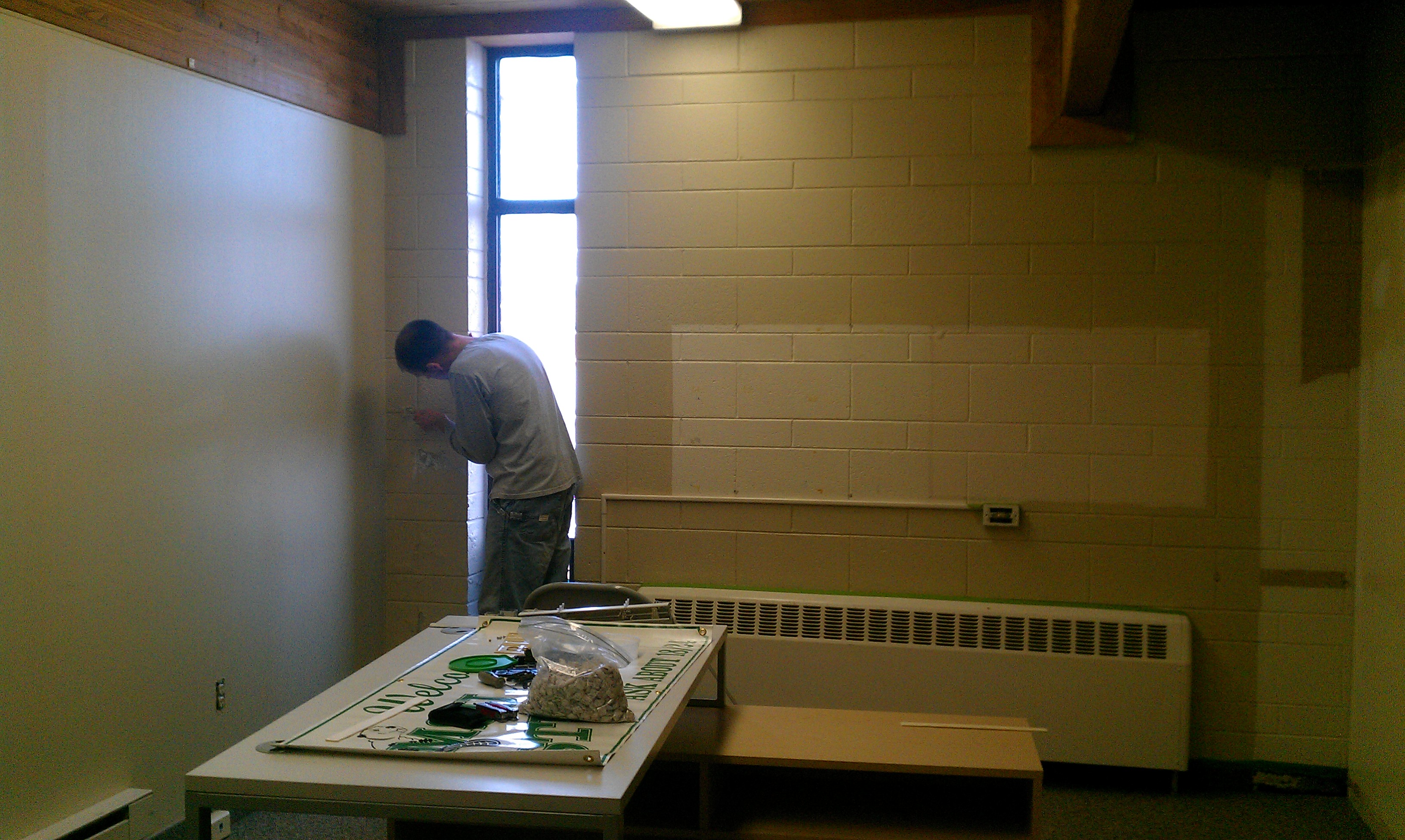 Waaaay back before Christmas our church’s youth pastor {who is also really cool and I also consider a friend} asked if I’d help him remodel his office a bit.