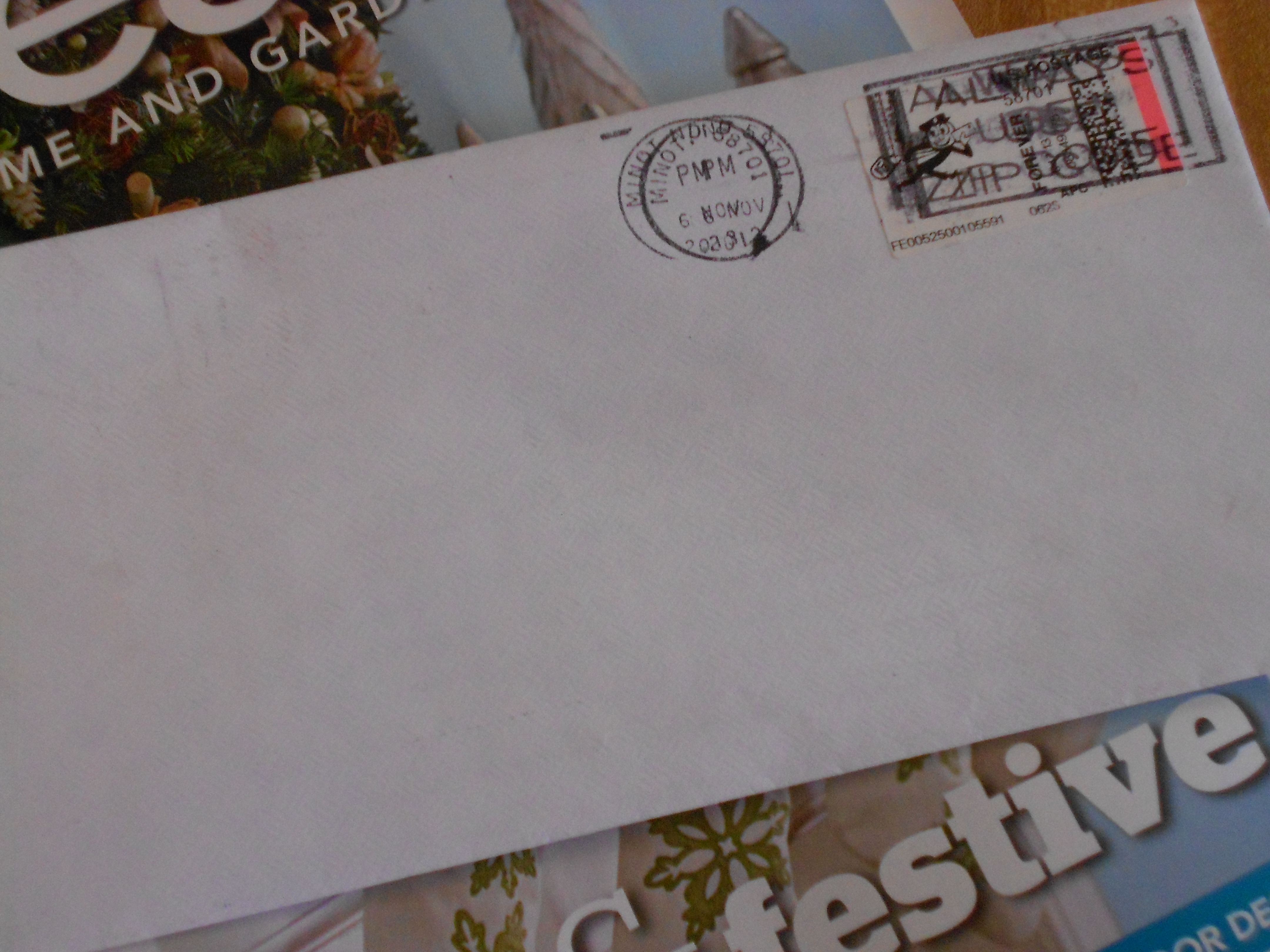 I got the mail. Only to find that I attempted to mail this and it was sent back…notice anything missing? I told you it was a weird day.