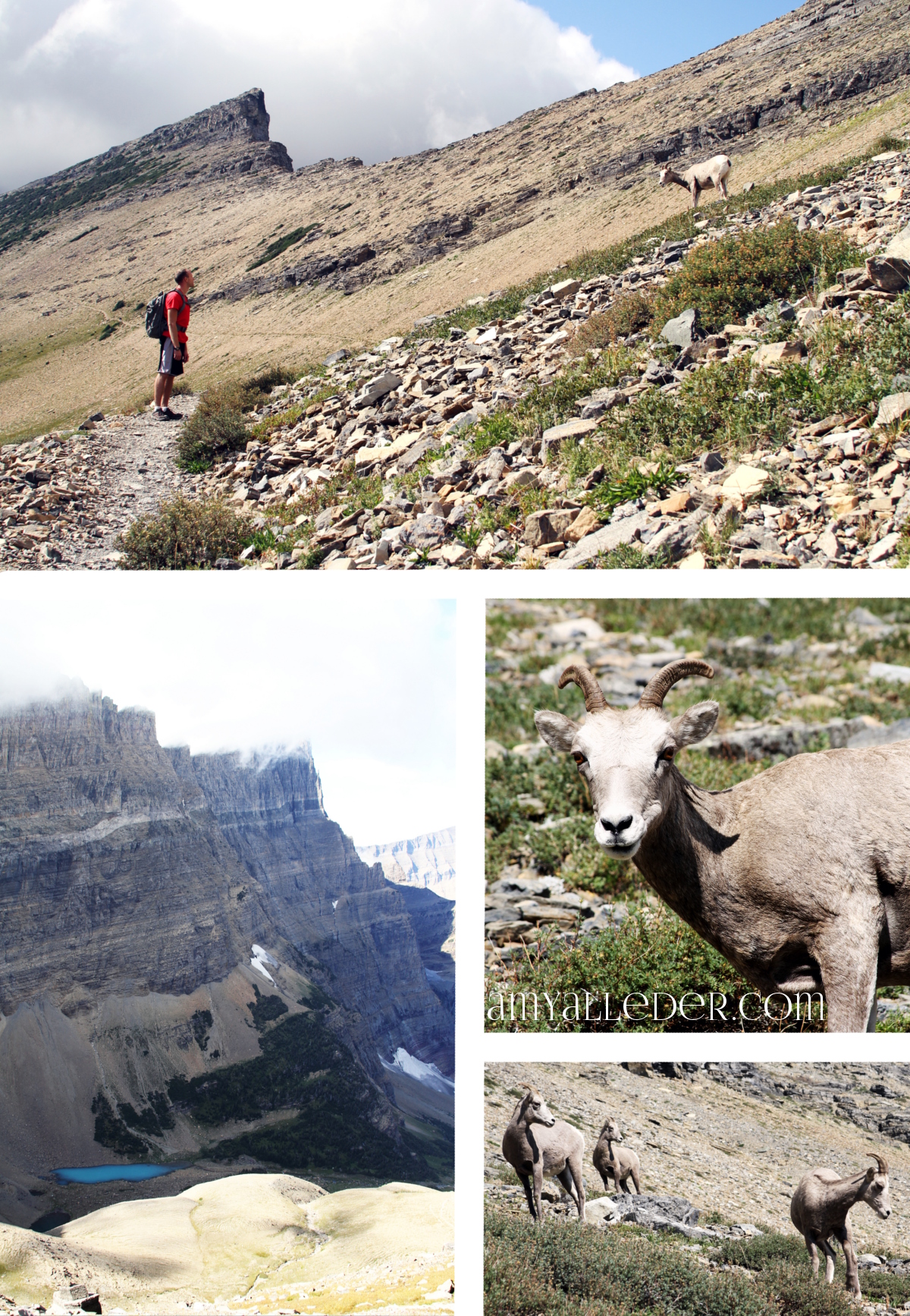 After lunch we headed back out. When we got to a split in the trail we decided we were still feeling “pretty good” so we took the fork toward Piegan Pass. This one was less strenuous. Only about 1900 feet gained, 4 miles round trip. Unlike Siyeh, the Piegan trail ascends very gradually. The payout at the top is big. We got our fist glimpse at one of the turquoise glacial lakes in the park as well as an up close encounter with a group of lady big-horn sheep.