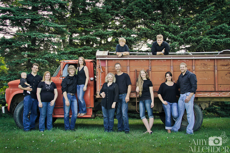 Nearly an hour outside of town in the vast country side of Practically Canada there is a family farm that the Rogers family calls home. As soon as I pulled in the driveway I knew this would be a special session. The day was perfect, the farm was a photographers dream. Vintage trucks, tree lines, antique farm equipment, dirt roads and endless fields. My gut told me that we'd be getting some magical photos. Grown up family sessions are so, incredibly fun. The in-laws, the out-laws, the new additions and the still-in-school. I love it when they all come together to capture the wonderful miracle of now.