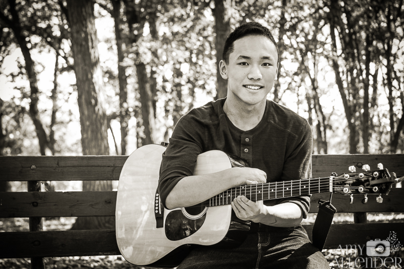 We started his session in the park with his guitar. From the photos, you wouldn’t know that the wind was completely reckless on this awesome fall afternoon. But it was. Through the whole shoot I was thankful that he had short hair that didn’t show the wind!
