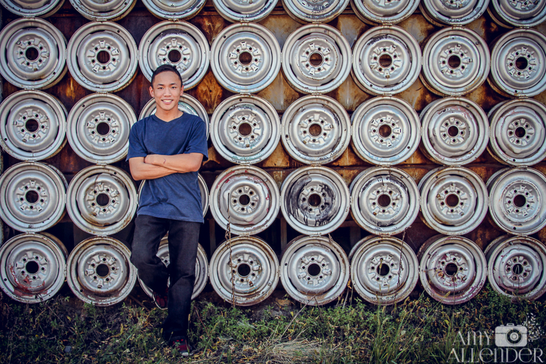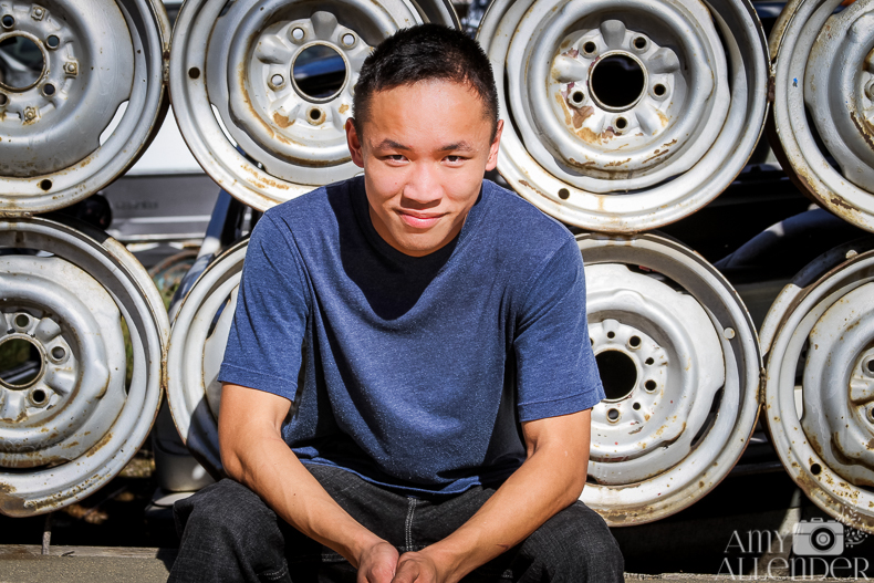 Since Nathanael was one of my last guys for senior portraits I knew I wanted to take him to one of my most favorite backdrops for boy portraits: The hub cap wall.