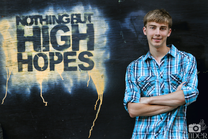 One of my most favorite things about shooting senior boy photos is that they usually bring a mom along. {I think I might have mentioned this before.} Patrick’s mom is awesome. I had a great time chatting with her while we waited on wardrobe changes. And–she gets to take full credit for showing me this awesome wall! What could be more perfect for a senior photo?