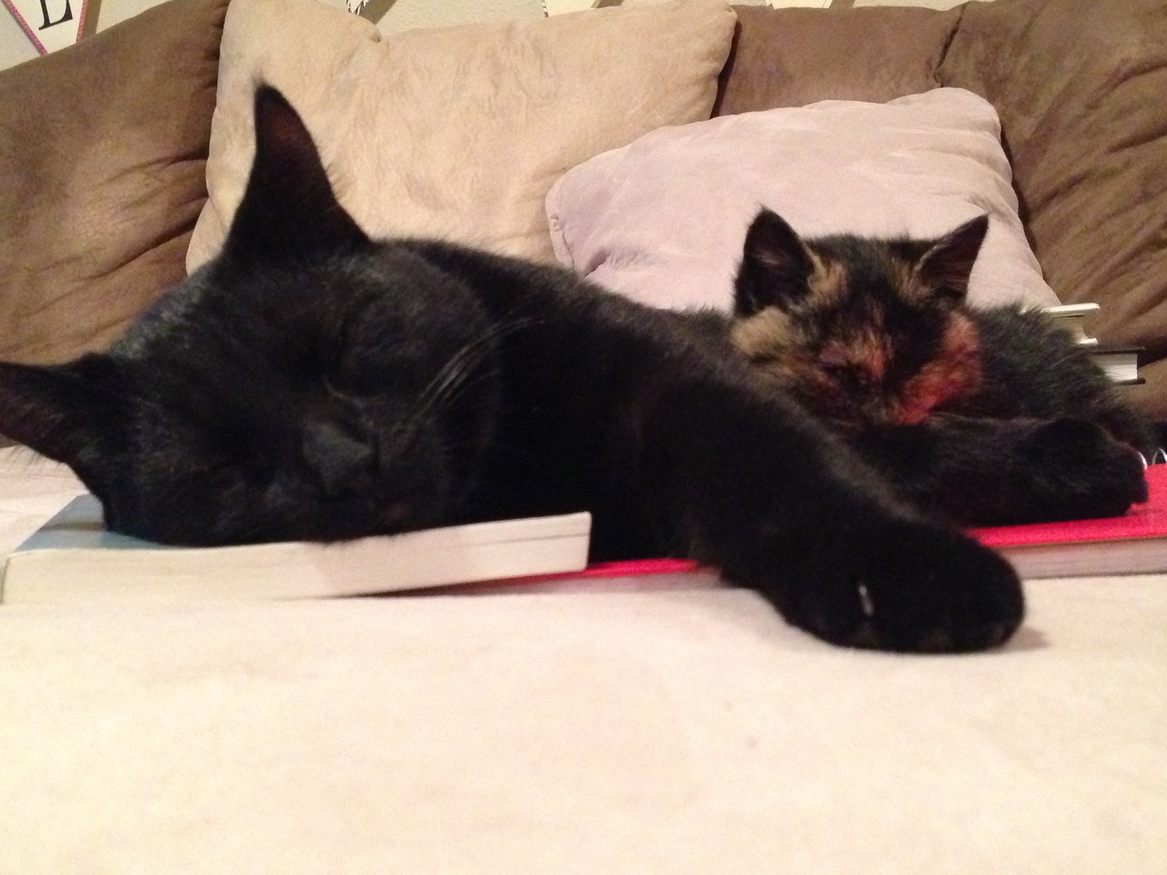 We popped both hoods and left the kitten over night. On Thanksgiving Day the one and only Katie {cat lover} came over to pick up a cinnamon roll after our morning run. I showed her the kitten. She held it. And just like that…BAM. Thanksgiving miracle. The kitten rode home with her that morning. Now she lives happily ever after with Katie, Sean, and of course…her big brother Bandit. Precious, right?