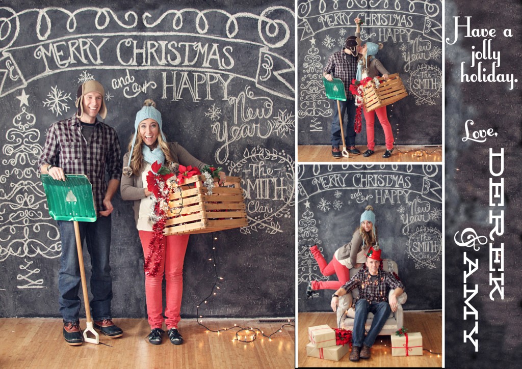Staged Christmas card photos are not meant to be a window into reality. They are created to be a little whimsical and fun. {At least mine are.} So, although you wouldn’t normally wear a jacket inside, or snow boots with cute jeans or hats and scarves without coats–it’s totally cool to do in your Christmas photo.