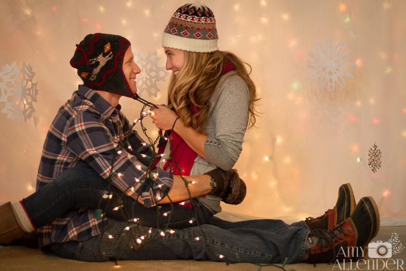 This is my first an foremost tip when it comes to Christmas card portraits. I’ve gotten lots of {very nice} compliments on the clothing Derek and I wore in the sample mini session shots. But we went through a few options before we settled on the right thing. Okay–I went through a few options, then told him that he should “…really put on the flannel–it looks cozier.”